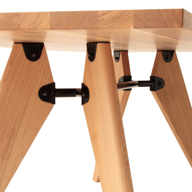 第二次世界大戦中にデザインされたため、鉄不足の影響を受け、脚部にも鉄ではなく木材を使用しています。オーク材を使用し、温かみのある、心地良い素材感が魅力です。