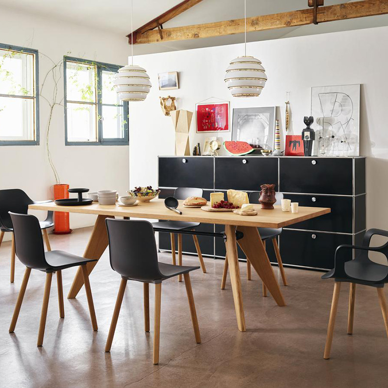 ジャン・プルーヴェは、1941年~1942年の1年間、化学会社ソルベイ社のためにいくつかの製品をデザインし、その中の製品のひとつが、この木製のテーブル「Table S.A.M. Bois(ターブル S.A.M. ボワ)」です。