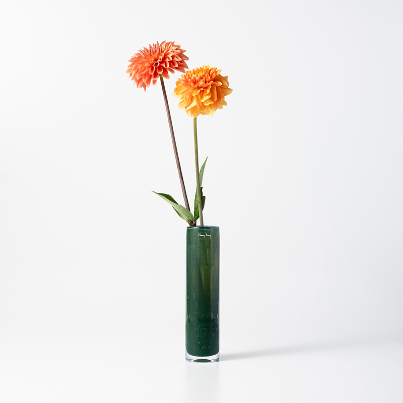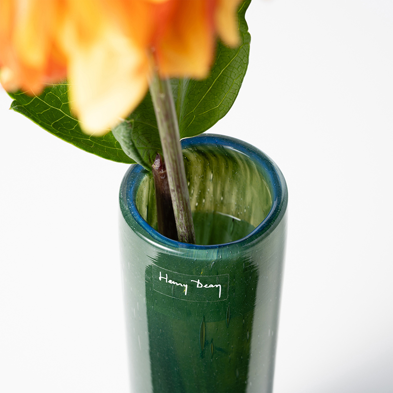 1972年にベルギーの小さな街で、旅と読書とモダンアート、ガラスをこよなく愛するHenry Deanによって設立されたブランド。彼は、日々の生活の中でふと浮かんだ映像をガラスによって表現してきました。現在は引退し、フランスの田舎町で静かな生活を送りますが、その情熱は二人の息子と娘に受け継がれています。古くからガラス生産が盛んな東欧の工場で、熟練した職人たちの吹きガラス製法によってひとつひとつ丁寧に作られた花器は、手に取ると冷たいガラスの中にハンドメイドのあたたかな温もりが感じられます。初めてのHenry Deanとして選ぶなら「Pipe」(パイプ)シリーズがおすすめです。「Pipe M」は、見た目はシャープながら、たっぷりと花を活けられます。