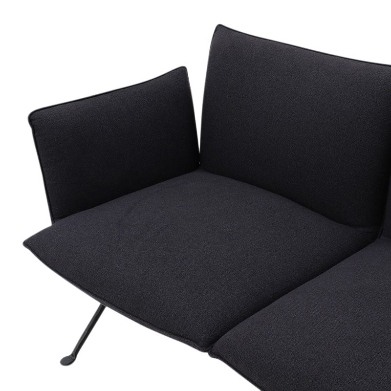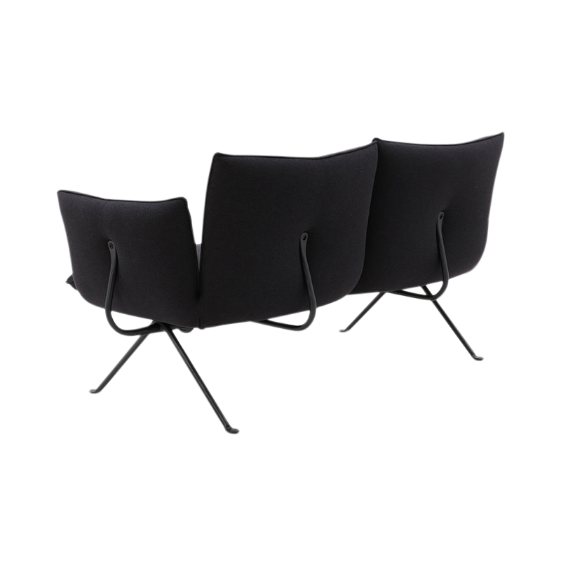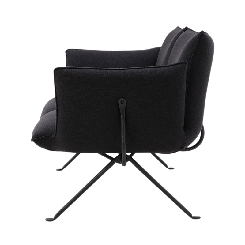 インダストリアルで質感豊かなフレームが、コンテンポラリーなシートのシルエットに新鮮なコントラストを生み出しています。