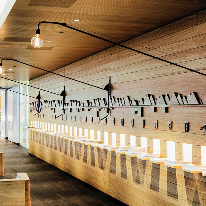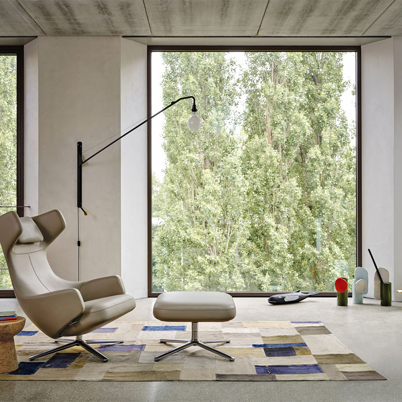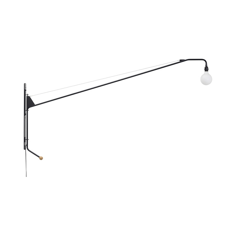 ビーチ材のハンドルがついたアームは、パウダーコート仕上げのスチールチューブでできています。 2メートルを超える大きな照明でありながら、電球とスチールを用いたスイング式のアームだけで構成された、簡潔なデザインが魅力です。