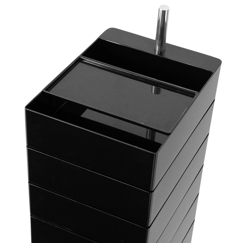 カッペリーニ、ドリアデ、フロス、イッタラ社等のデザインを手掛ける、コンスタンティン・グルチッチによる、軸を 中心に360度引き出しが回転する、自由自在な収納コンテナ。