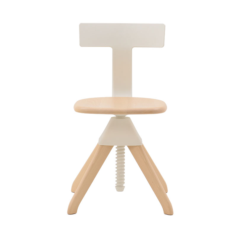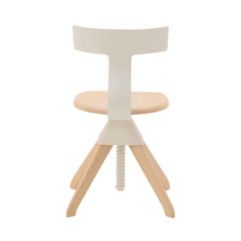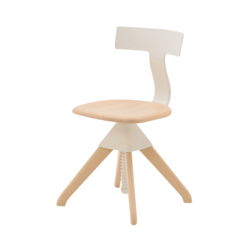 座面をまわすことによって昇降する機能が、デザインの要になっているサイドチェア。