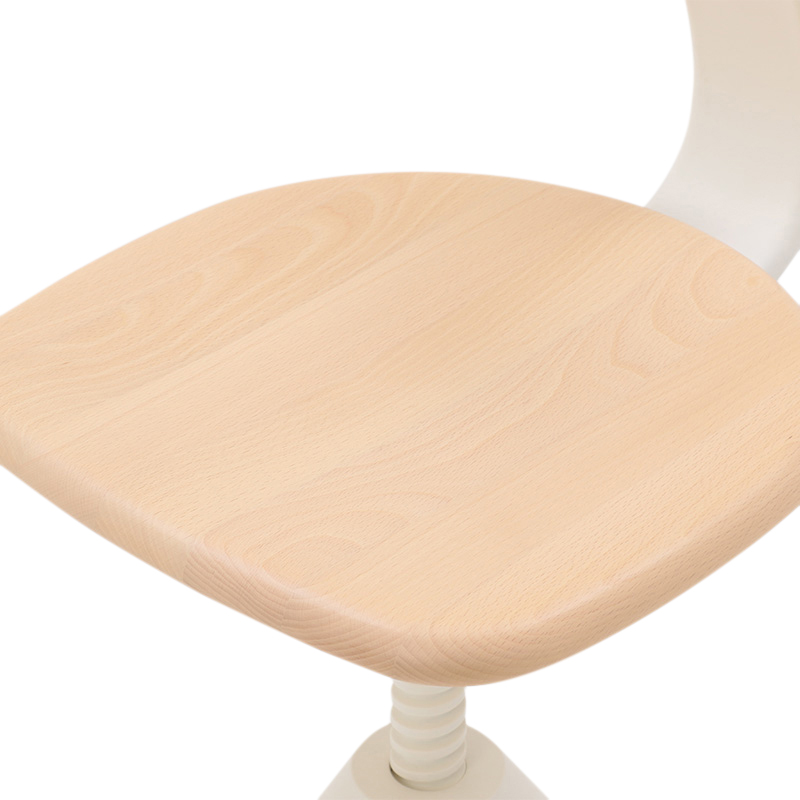 ホームユースからワークスペースまで幅広く使用でき、 指1本で回せるほどの軽い回転と木材を削りだした滑らかな座面の仕上がりが、使い心地の良さを感じさせてくれます。