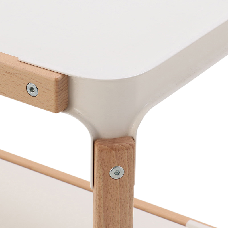 スチールに木を組み合わせた異素材とのコラボレーションにより独特の雰囲気をかもし出しています。