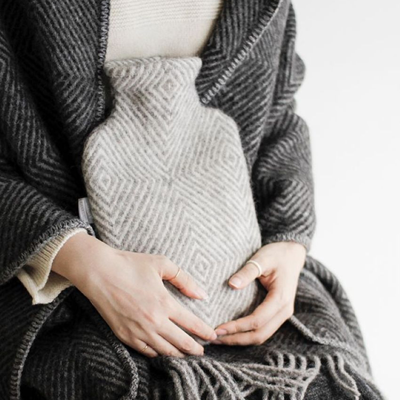 ラプアンカンクリのロングセラー、MARIAポケットショールと同じ生地で作った湯たんぽ。