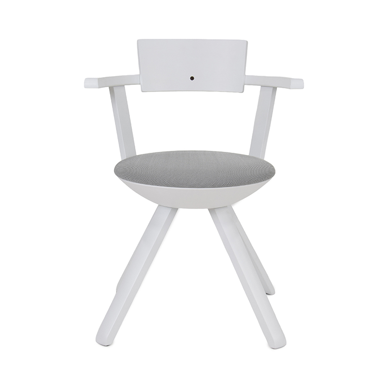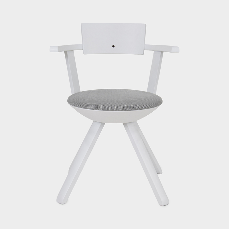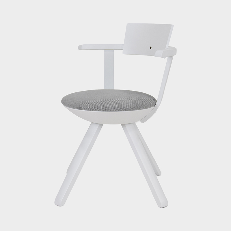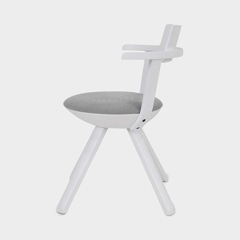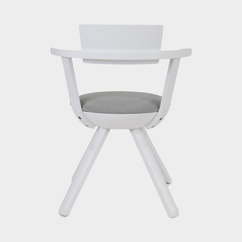 背もたれと肘掛けには、伝統技術「ラメラ曲げ木」を採用。合板でありながら無垢材のように滑らかな表情を備えています。無垢バーチ材の脚部は軽やかな印象を与えます。