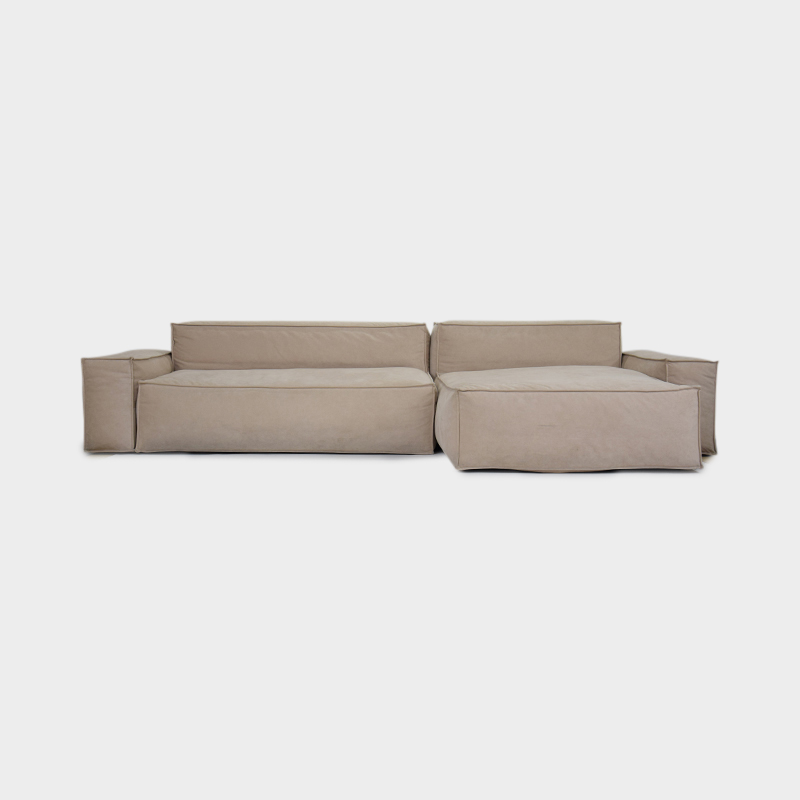 いちばんの特徴は、広くおおらかな“平野”を意味する名前の通り、フラットで広々とした座面です。その大きな座面の上に脚を投げ出して座るのもよし、ゴロゴロ と心ゆくまで寝そべるのもよし。ソファというより、床が一段高くなったような感覚のデザインは、自分らしく自由にくつろげるようにと考えられたものなのです。
