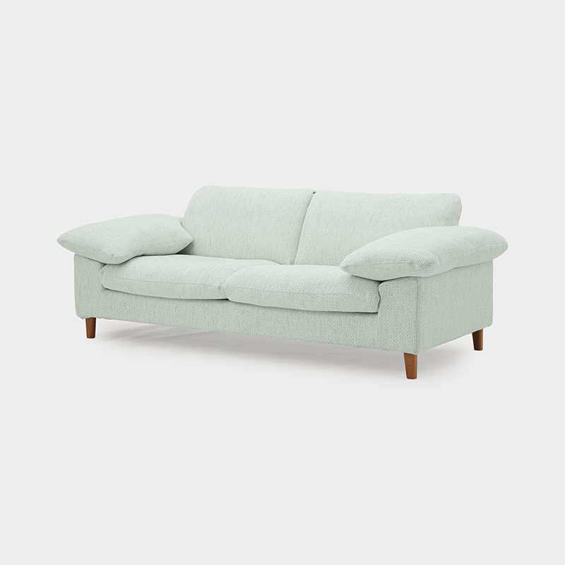 コンパクトながら、ゆったりとした快適さを備えた、優しい雰囲気のソファです。