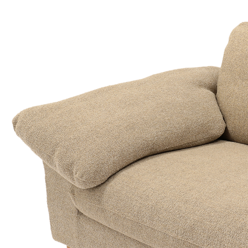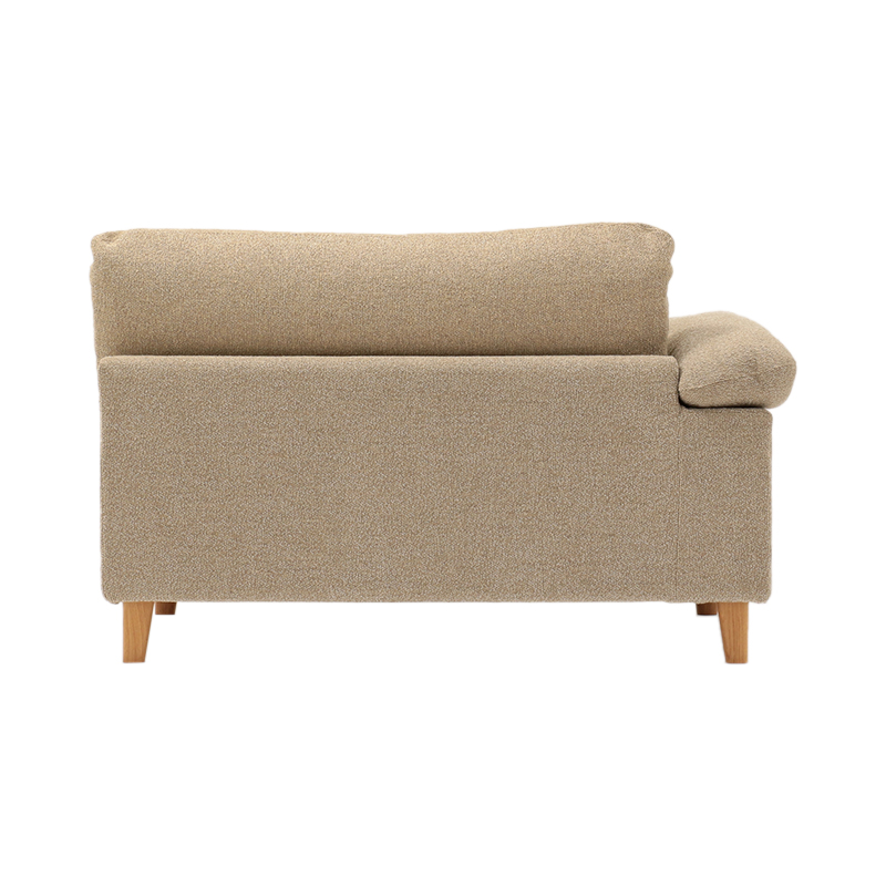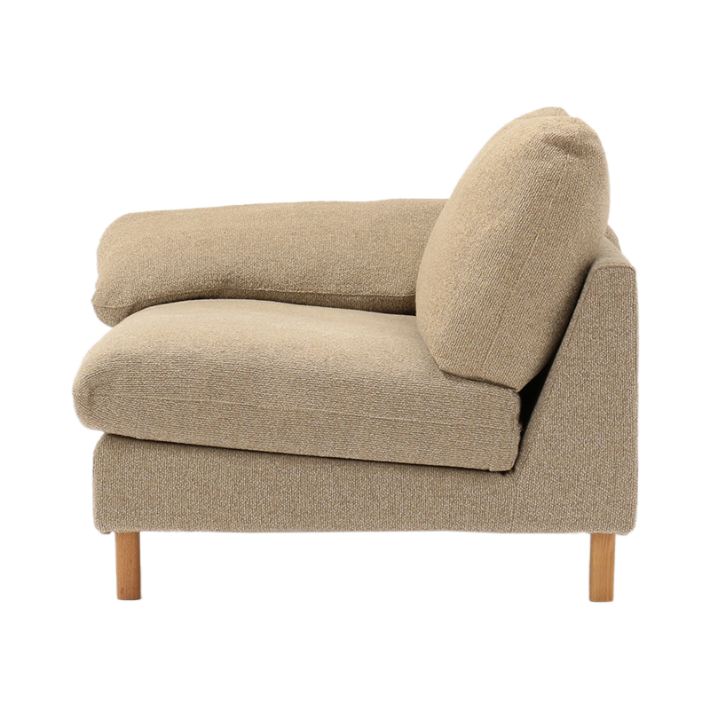 シートにはウレタンとフェザーを使用し、快適な座り心地を実現しています。また寝そべっても身体を柔らかく包み込んでくれる大きめのアームクッションも魅力。