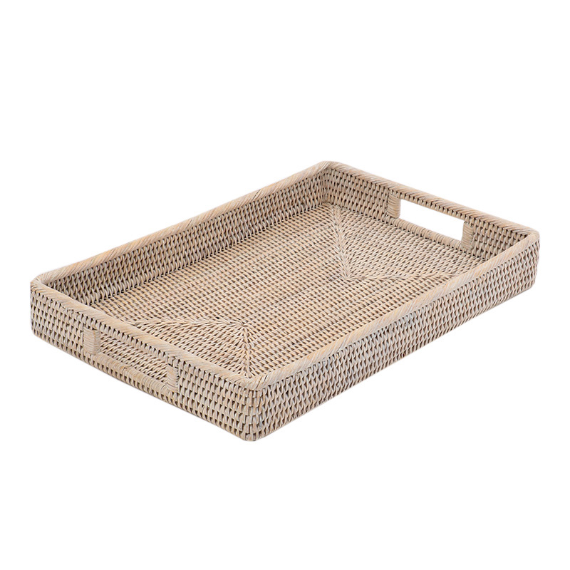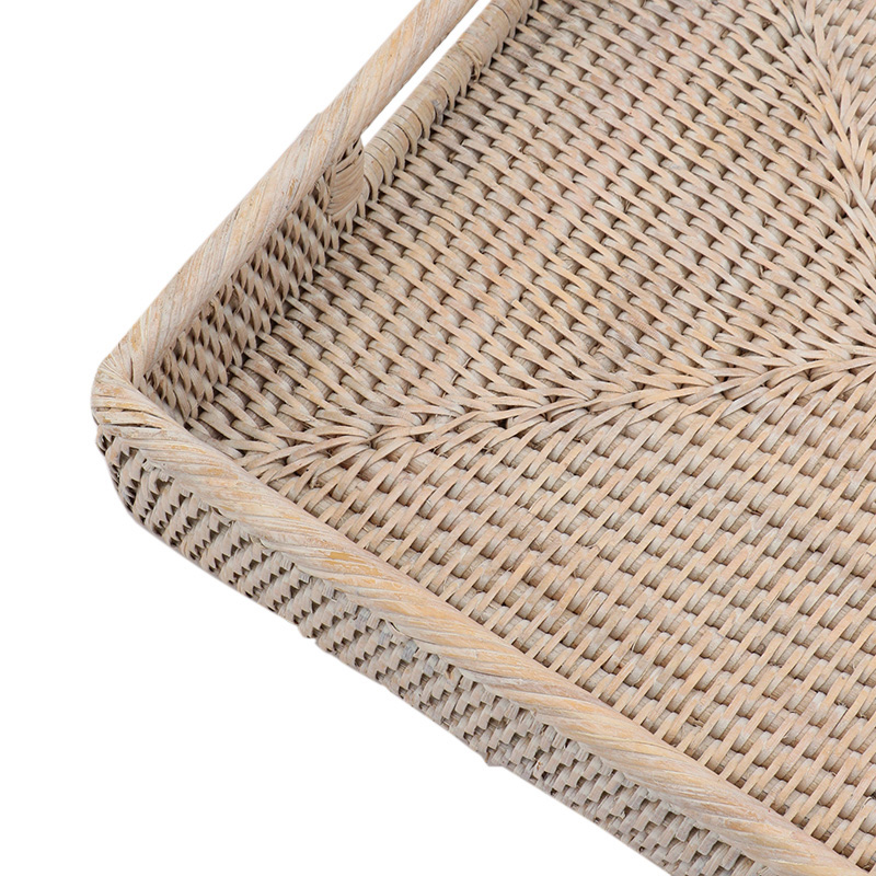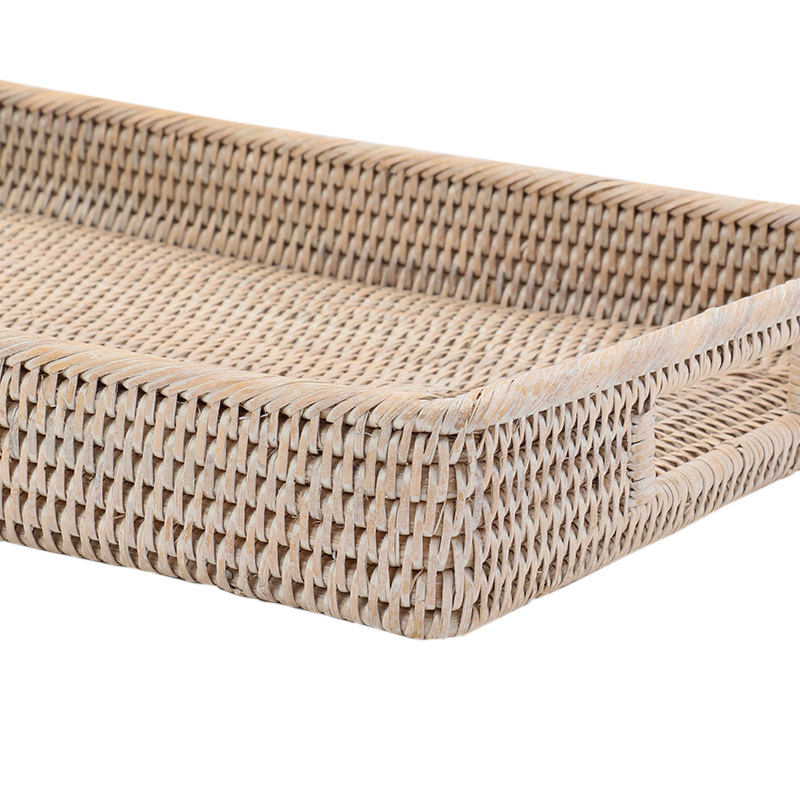 長方形のサーブトレイ。ティータイムにお菓子をのせたり、ストックの調味料をのせたり、整理しながらテーブルトップをナチュラルな印象に。品質の高いラタン製品を中心に、インテリアやデコレーションアイテムを手掛けるフランスのブランド BAOLGI(バオルジィ)。