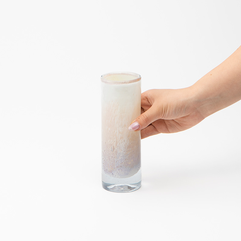 古くからガラス生産が盛んな東欧の工場で、熟練した職人たちの吹きガラス製法によってひとつひとつ丁寧に作られた花器は、手に取ると冷たいガラスの中にハンドメイドのあたたかな温もりが感じられます。