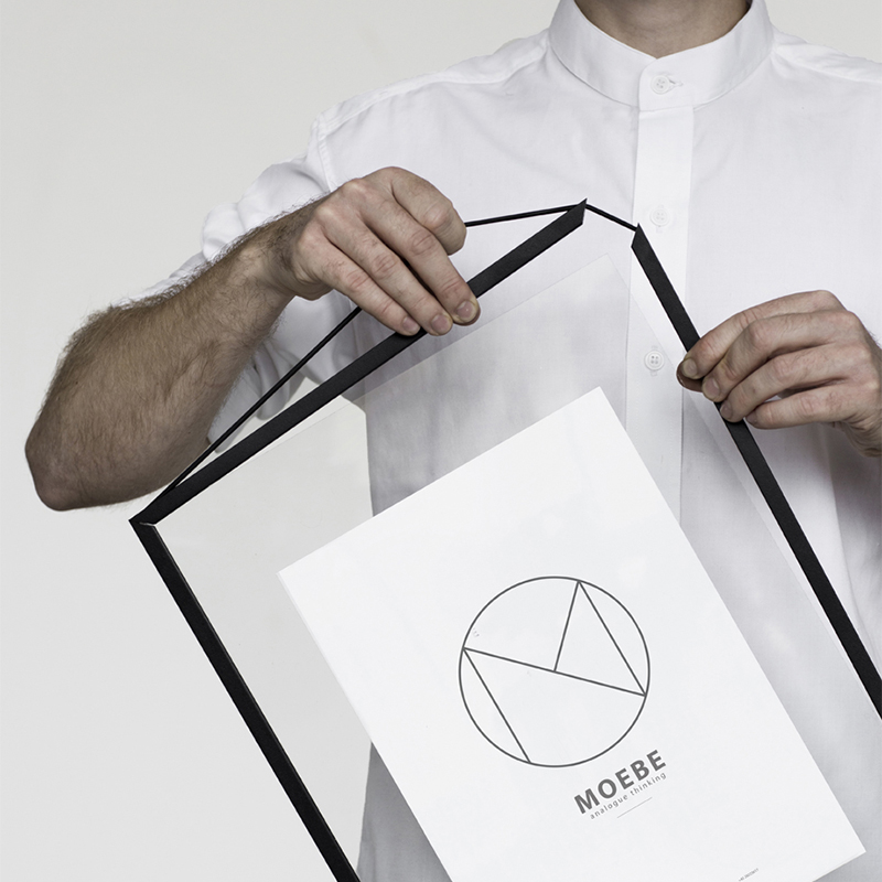 「良いデザインとは、それ自体がサステナブル(持続可能なもの)である」という信条のもと、簡単にリペア、組立、リサイクルできるパーツで構成されています。アクリル板と枠材をラバーバンドで固定するだけの「FRAME(フレーム)」、くさびで棚板を固定するシンプルな構造の「シェルビングシステム」など、緻密な構造とミニマリズムを追求したプロダクトは発表されるや否やすぐに世界的な人気を博しています。普遍の形ともいえる“ 額縁 ”をこれまでにない観点から捉え直しデザインされたフレーム。