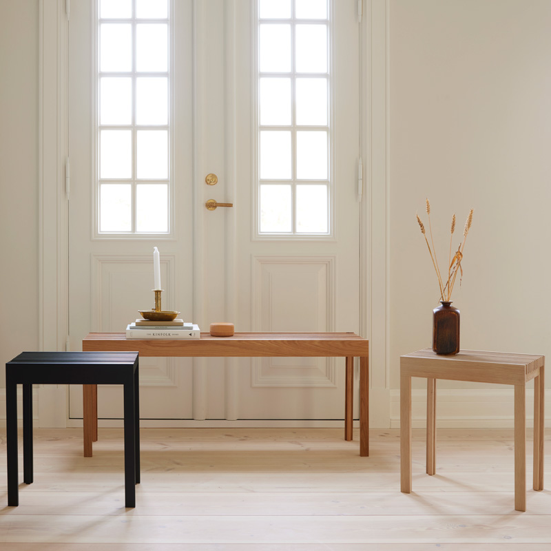 デンマーク・フュン島のダムスボの森と密接に協力した木製家具を中心に、ポルトガルの職人とのセラミックライン、ボリビアの職人とのアルパカのテキスタイルなど、素材の力を最大限に生かした独自のアイテムを展開。