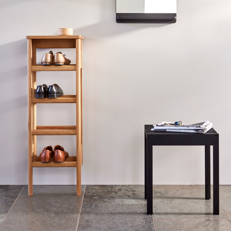 調和のとれたデザインのシューラックとコンソールテーブルを組み合わせたもので、廊下、ユーティリティルーム、玄関ホールの狭いスペースを最大限に活用するアイテムです。