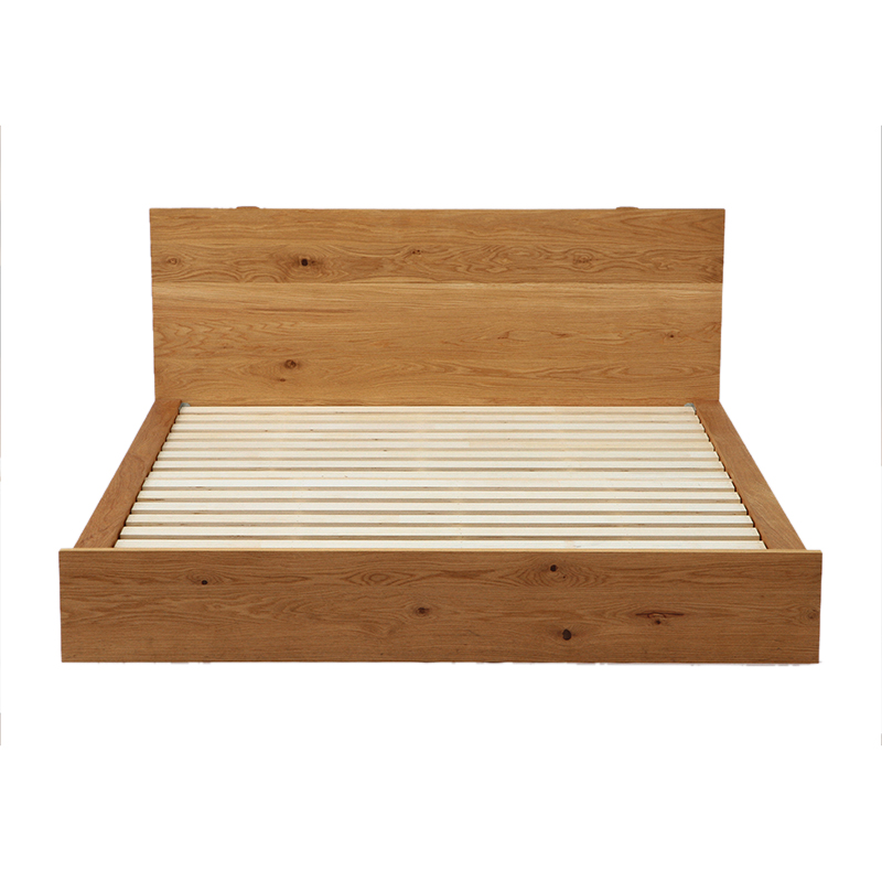オーク の無垢材を無作為に剥ぎ合わせ、ヘッドボード、 フットボード をそれぞれ一枚の“表情豊 かなPLATE(板)”として加工した、ザ・コンランショップオリジナルのベッドです。