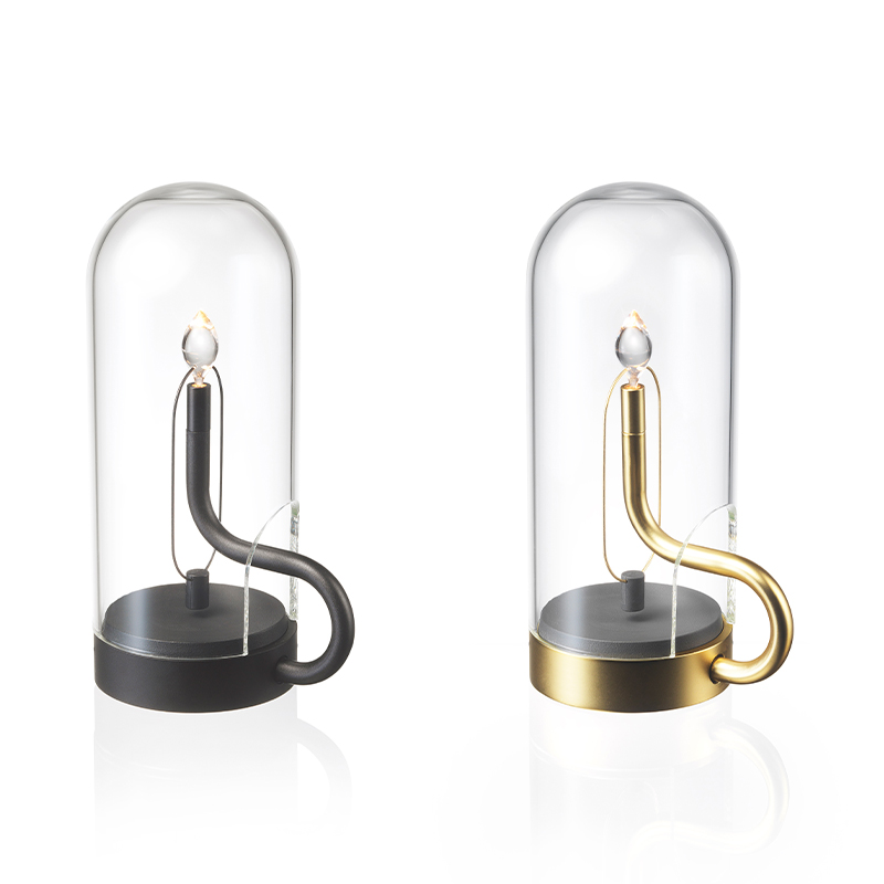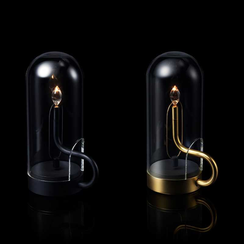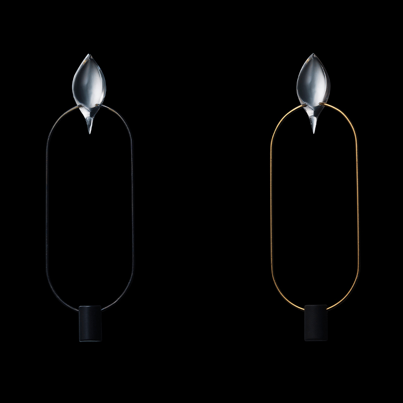 2000Kの温かみのあるLEDランプは、スイッチを入れると、磁石の作用により不規則な動きを伴って、ペンデュラムレンズ先端に自然な灯りを灯します。消灯するとき一瞬、光が強くなってから消える佇まいは、あたかも本物の蝋燭のようです。
