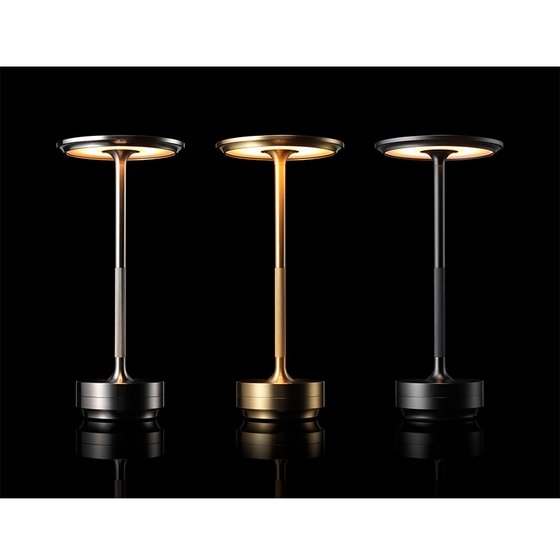 すべてのパーツを、金属のかたまりから削り出して構成されたテーブルランプ「TURN」。