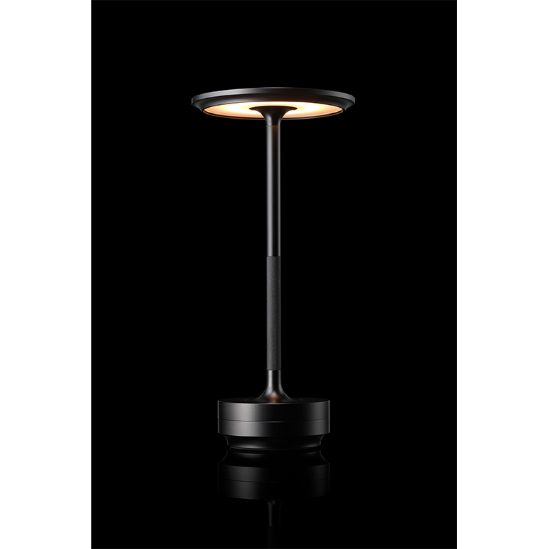 良質なものをできるだけ長く愛用したいというユーザーに向けた設計思想は、独自の LED 制御技術で高品位な灯りを実現するだけでなく、使用する素材の質感や実力派デザイナーを起用した個性的なデザインにも表れています。すべてのパーツを、金属のかたまりから削り出して構成されたテーブルランプ「TURN」。