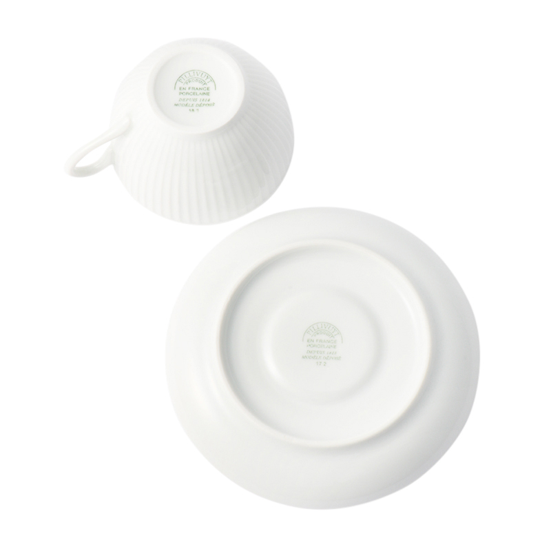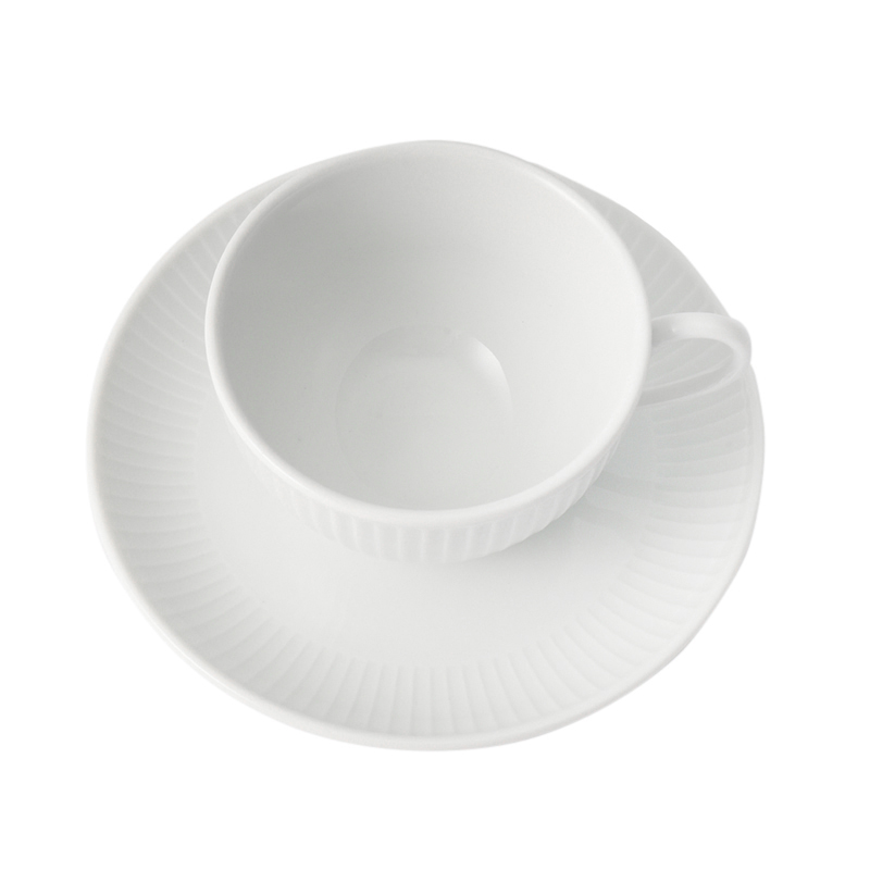 プリーツの入ったエレガントなデザインが魅力の「PLISSE」シリーズのティーカップ&ソーサー。