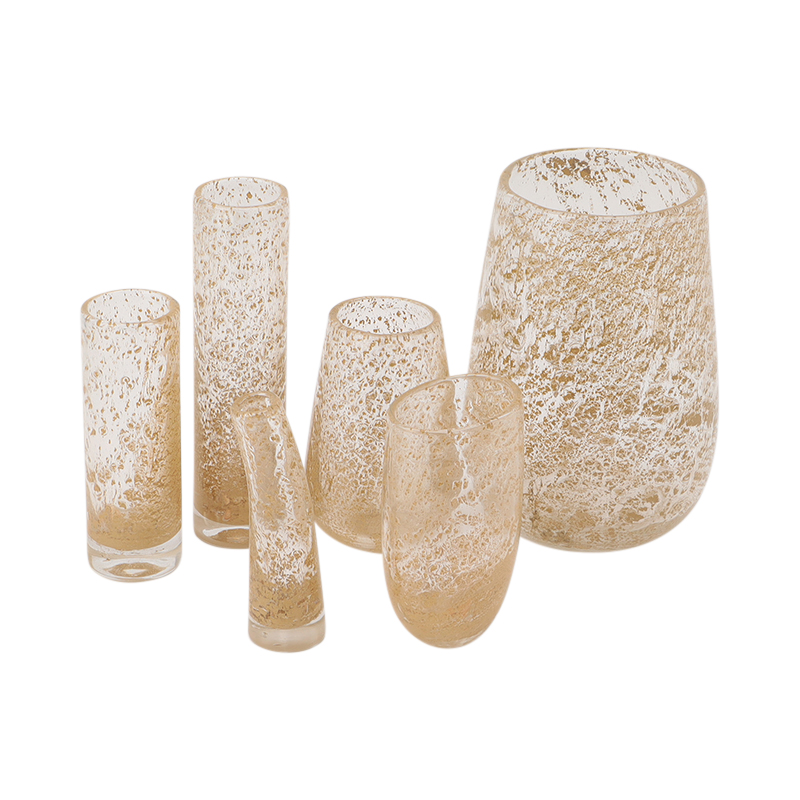 ・ハンドメイドの吹きガラス製である特質上、サイズや色が均一ではなく個体差がございます。また、小さな気泡や細かな傷、不純物、型による凹みや線、色むらや色の濃淡が見受けられる場合がございますが、製構工程上避けられないものであり、商品不良ではございません。