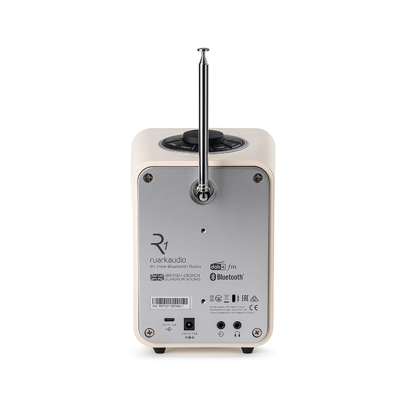 電源アダプター、クイックスタートガイドR1mk4はBluetooth4.2を搭載。スマートフォンやパソコンとワイヤレスに接続し、音源を再生することが可能です。そして、FMラジオは日本の周波数帯域(76.0-90.0Mhz)の受信が可能になりました。