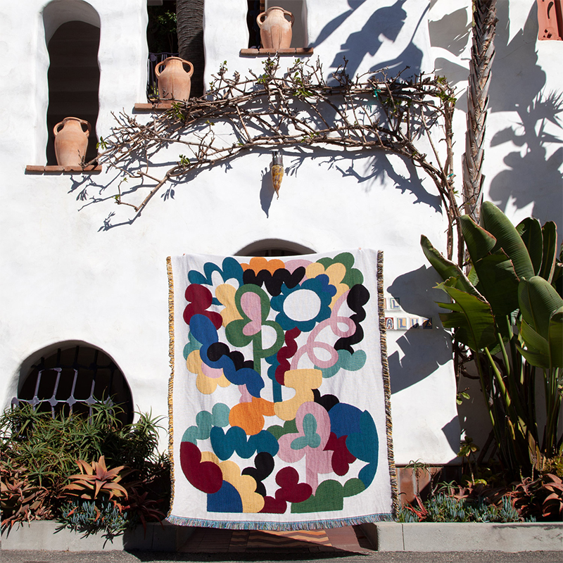 オーストラリア、シドニー在住のスウェーデン人イラストレーター、版画家。ポスカペン、鮮やかなアクリル絵具、リゾインクを武器に、花やその他の形を抽象的かつ遊び心たっぷりに解釈し、独自のスタイルを確立している。ロサンゼルスを拠点とするホームプロダクトブランド「Slowdown Studio」によるブランケット。