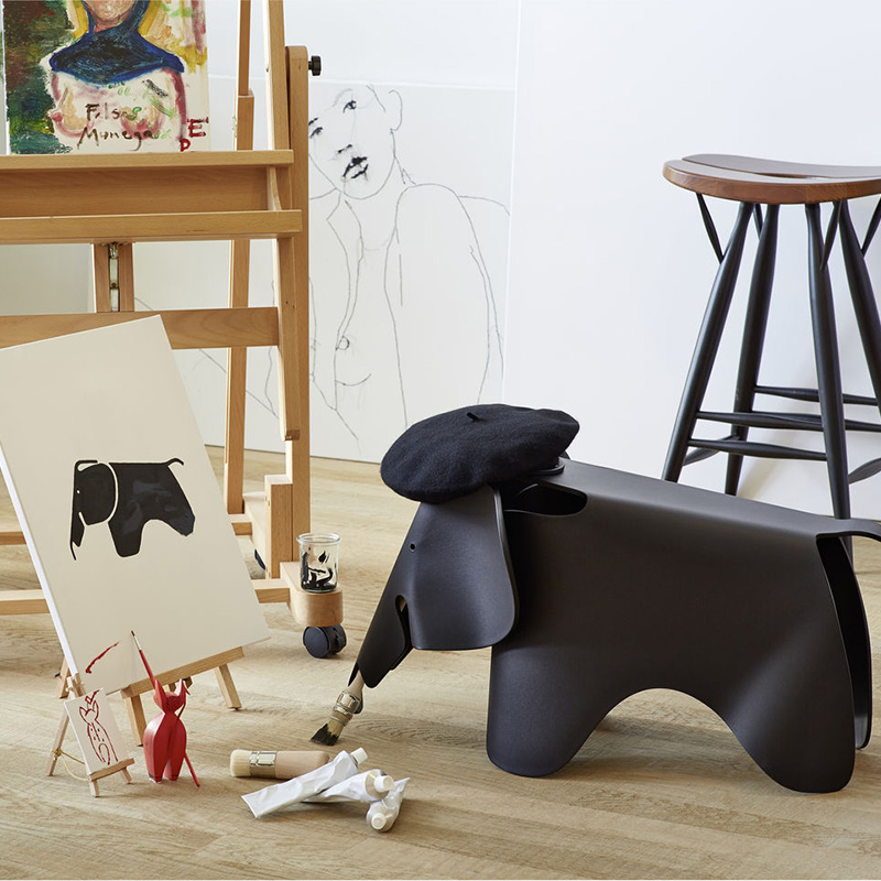 1945年にチャールズ&レイ・イームズによってプライウッドを成型する技術を用いて開発された愛らしい象のオブジェ「イームズ エレファント」。