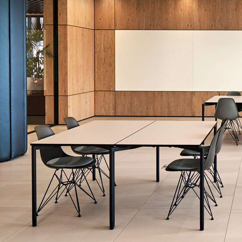 Designer : Edward Barber & Jay Osgerbyエドワード・バーバーとジェイ・オズガビーは、建築デザインや、カンファレンスホールなど大規模な空間デザインに取り組んできた経験を通じ、現代のニーズに応じた双方向のコミュニケーションに重点を置いた、プレゼンテーションや学習の場に相応しい、シンプルな可動性の高いテーブルシステムの必要性を見いだしました。