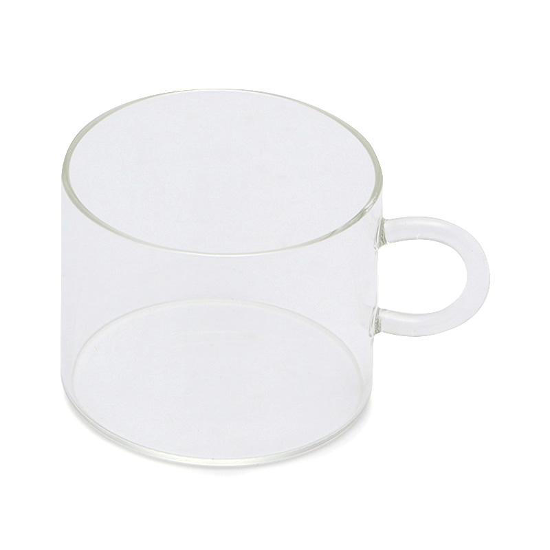 クリアガラスのティーカップ。シンプルさが際立つ、飽きの来ないデザインです。