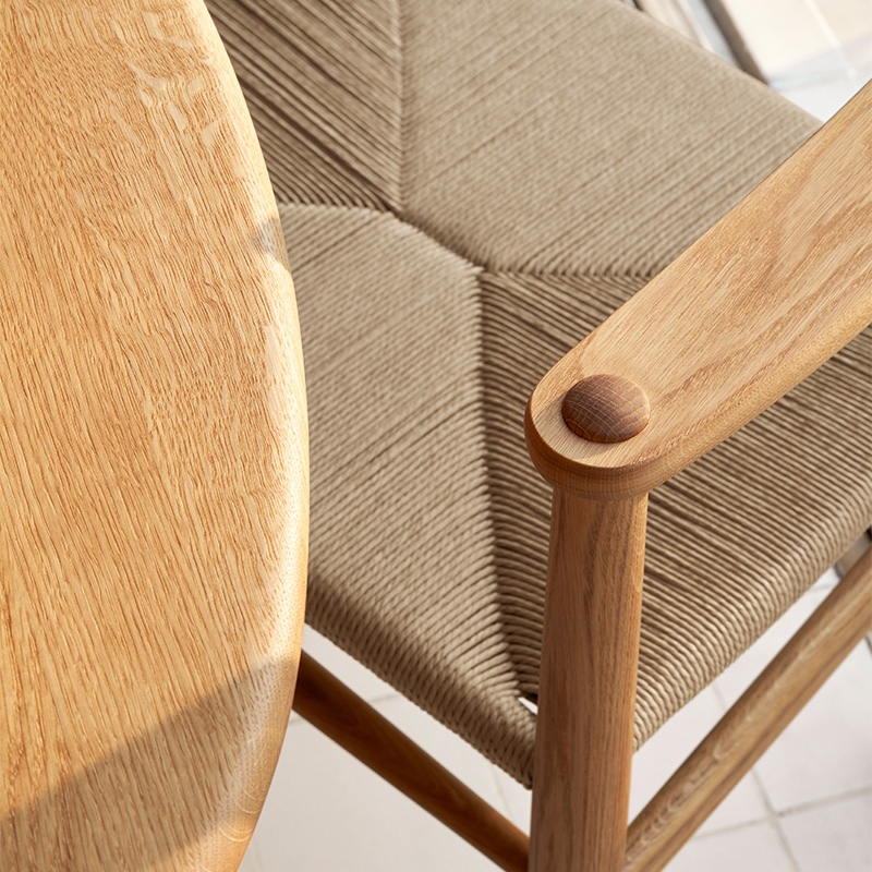 さらに、繊細な印象を与えるフレームやアーム、そしてペーパーコードで作られた美しい座面は、世代を超えて長く使える耐久性を考慮しています。