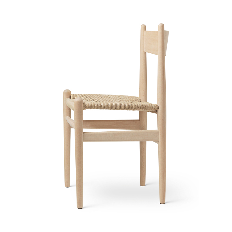 背もたれは、上部と下部のカーブを微妙に変えることで、より背のサポートを強化しています。そして、繊細な印象を与えるフレームとペーパーコードを施した美しい座面。いずれも世代を超えて、いつまでも心地よく使用できる耐久性を考慮し製作されています。