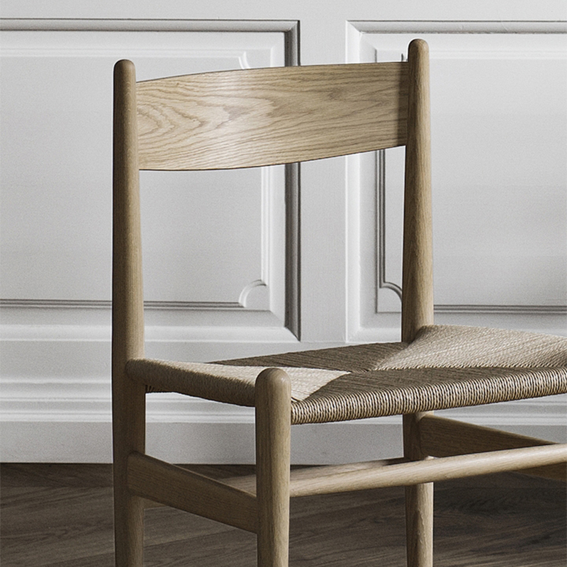 背もたれは、上部と下部のカーブを微妙に変えることで、より背のサポートを強化しています。そして、繊細な印象を与えるフレームとペーパーコードを施した美しい座面。いずれも世代を超えて、いつまでも心地よく使用できる耐久性を考慮し製作されています。