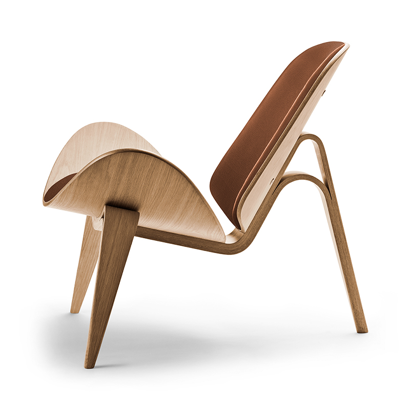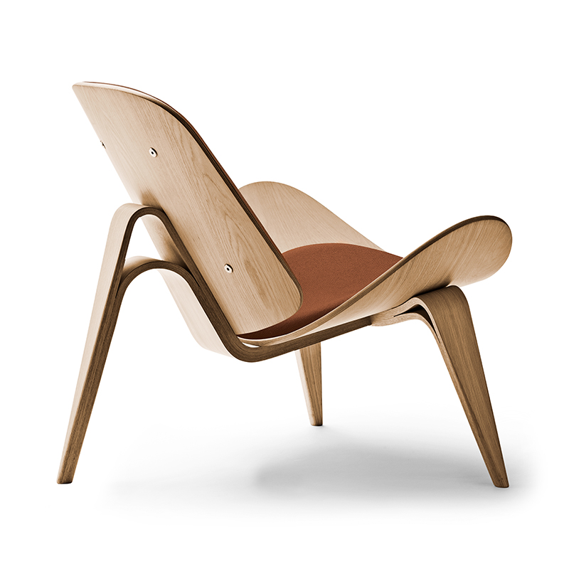 CH07 シェルチェアは、ウェグナーが信条とする、どこから見ても美しく、表裏があってはならという考えを見事に体現しています。