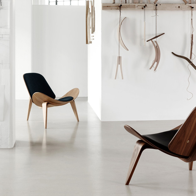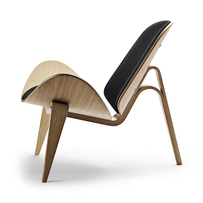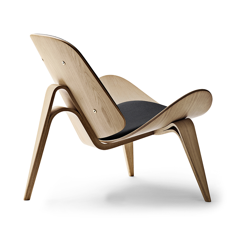 CH07 シェルチェアは、ウェグナーが信条とする、どこから見ても美しく、表裏があってはならという考えを見事に体現しています。