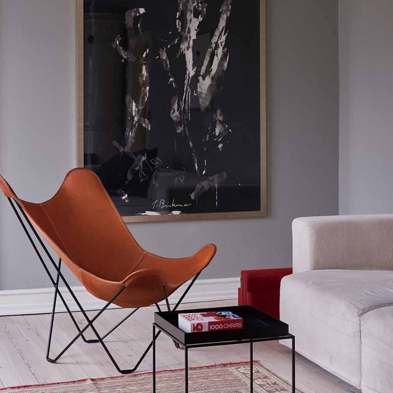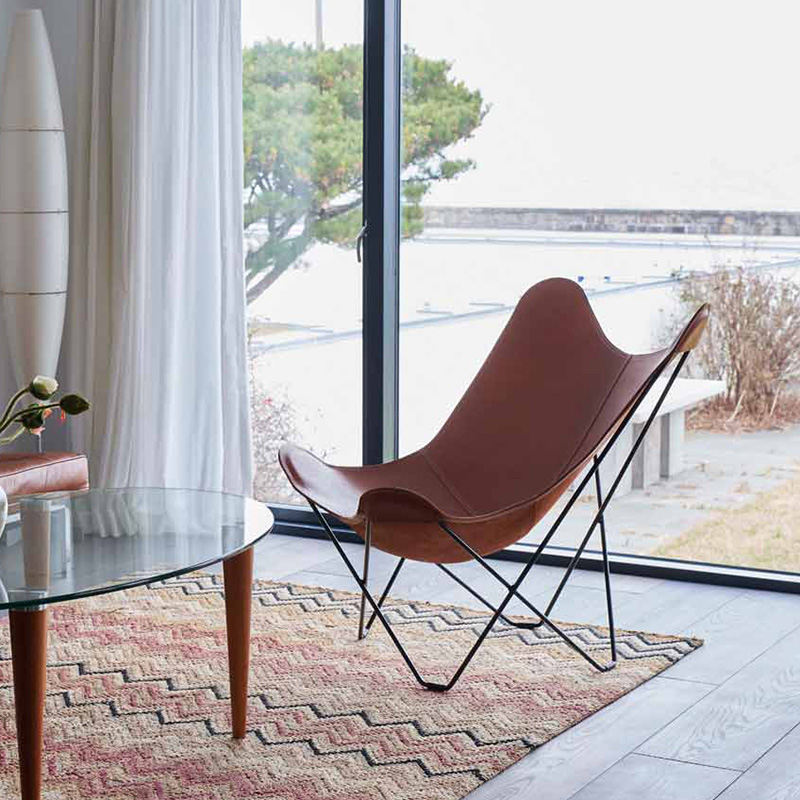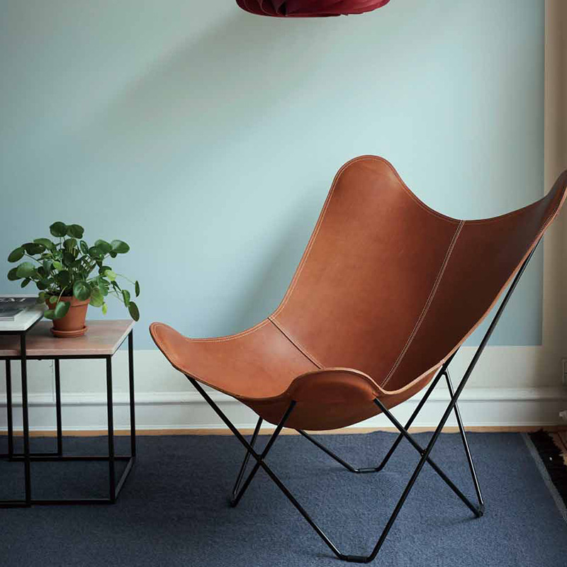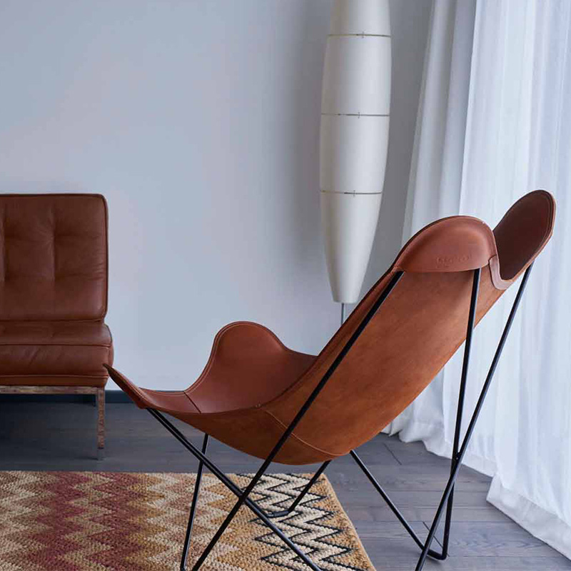 “バタフライチェア”の愛称でも知られる「BKFチェア」は、3人のアルゼンチン人デザイナー(アントニオ・ボネット、フアン・クルチャン、ホルヘ・フェラーリ=ハードイ)によってデザインされ、それぞれの頭文字をとってBKFチェアと名づけられました。