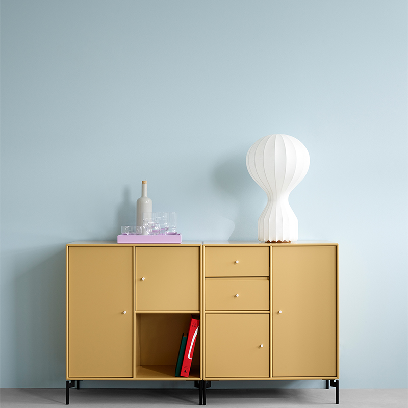 収納モジュールだけでなく、ラウンジチェアやオフィスデスクもラインナップに加わり、国際的にヒットしているヴァーナー・パントンのワイヤーシェルフシリーズや、ヨルゲン・ラスムセンの名作オフィスチェア「KEVIチェア」も、モンタナが新たに展開を始めています。COUPLE/カップルは、リビングや廊下、キッチンの収納に最適な、モダンなデザインのサイドボード。