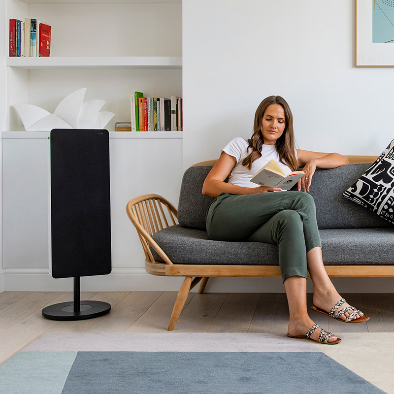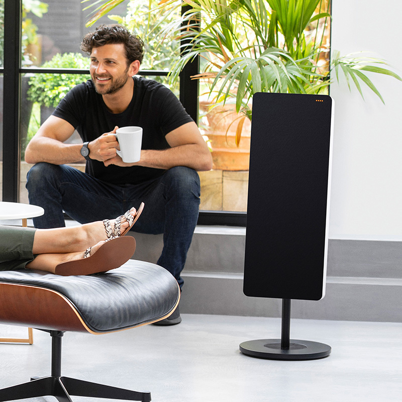 ケーブルをポールの内側に隠し、エレガントな外観にできるLE01の専用スタンド。