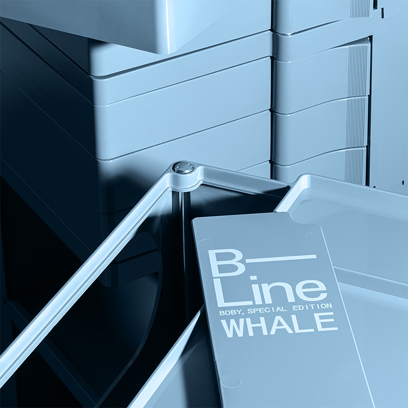 1960年代イタリアを代表するデザイナー、ジョエ・コロンボの名作 BOBY WAGONに2023年特別カラー「ブルーホエール」が登場しました。彩度を抑えたグレイッシュなブルーは穏やかな海を連想させる落ち着いた色合いです。