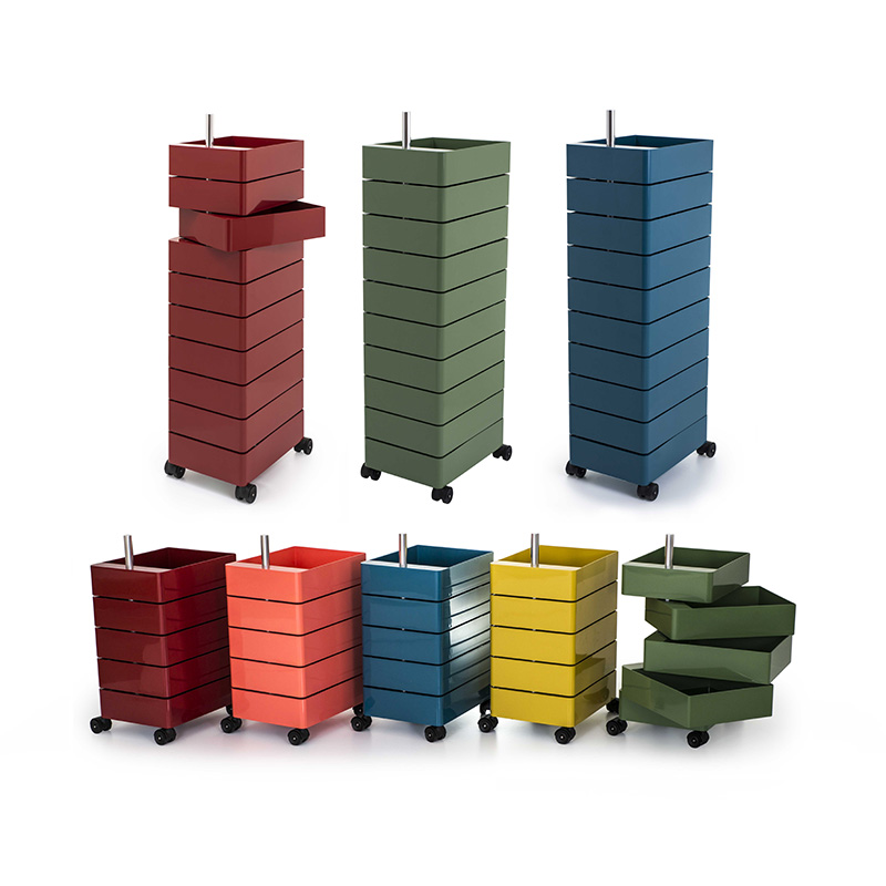 一度に複数の引き出しを回転させると、バランスを崩して転倒する場合がございます。ご使用の際は十分に気をつけてお使い下さい。Konstantin Grcic(コンスタンティン・グルチッチ)によってデザインされた、アクティブな生活をサポートする、自由自在な収納。