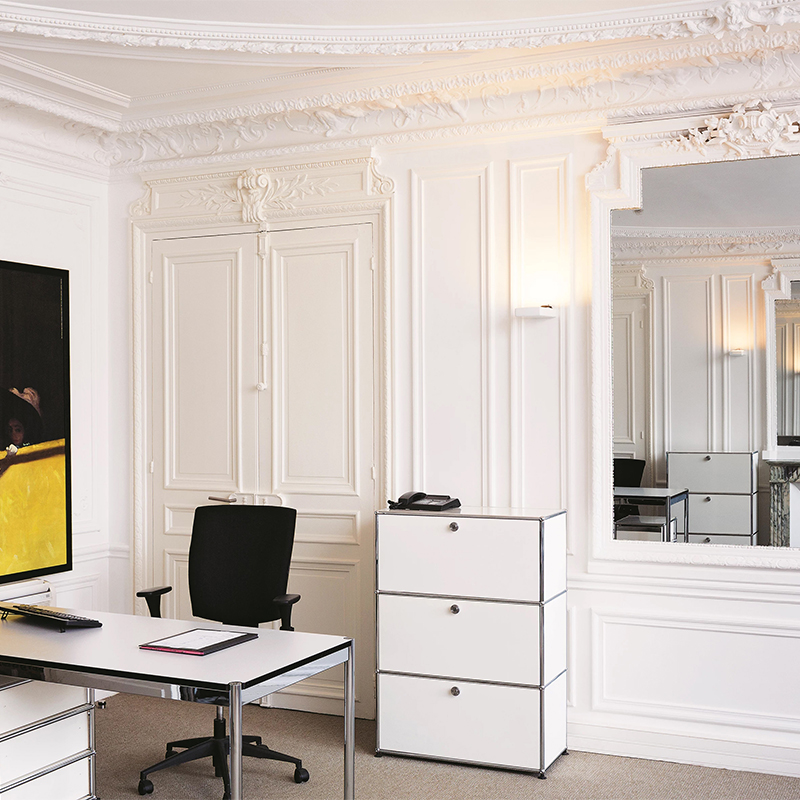 「形態は機能に従う」という企業理念を体現し続け、代表的なモジュラーシステムのUSMハラーをはじめ、高品質の素材、時代の流行に左右されない普遍的なデザイン、そして環境に配慮した生産技術が高く評価されています。