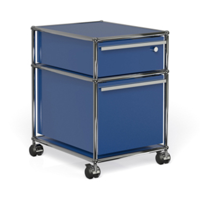 机の下などの収納に便利です。上の段は鍵付きの引き出しです。