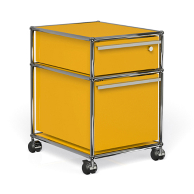 机の下などの収納に便利です。上の段は鍵付きの引き出しです。