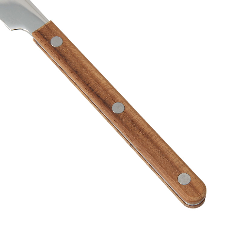 金属部分にはステンレススチール、持ち手部分にはチークウッド素材を使い、職人の手によって1本1本丁寧に作られています。