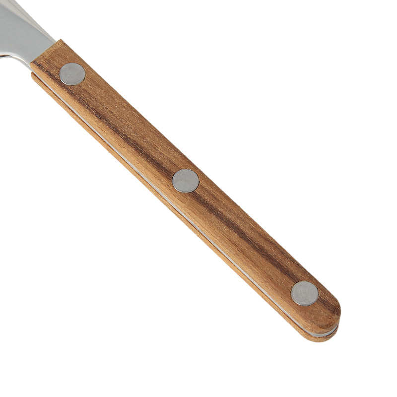 金属部分にはステンレススチール、持ち手部分にはチークウッド素材を使い、職人の手によって1本1本丁寧に作られています。