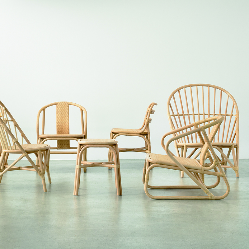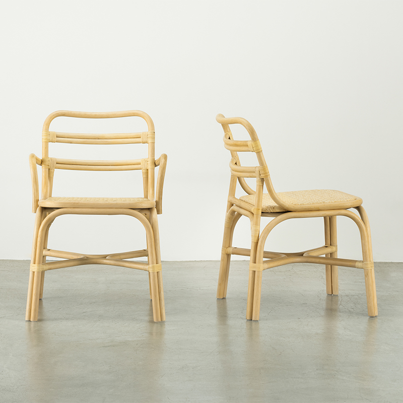 シェーカー家具の系譜に見られるシンプルで無駄を削ぎ落とした構造美を、ラタン素材でリデザインしたコレクションです。様々な空間に調和する存在感を持ち、軽量で扱いやすいスタンダードなラタン家具です。座面はメンテナンス時に交換出来るように取り外しが可能です。