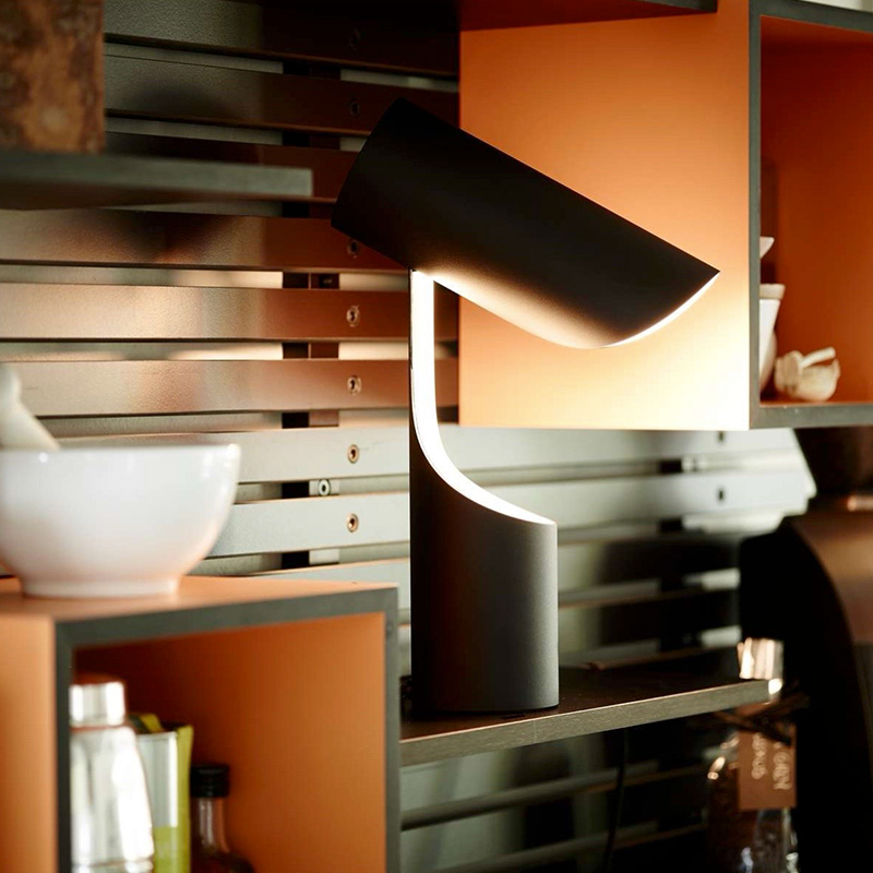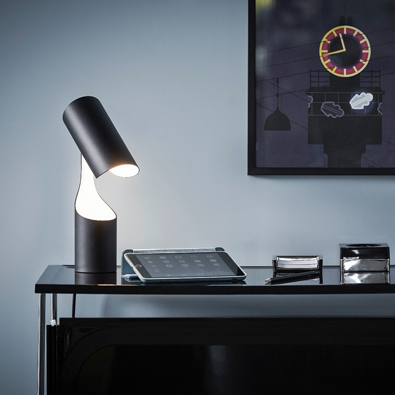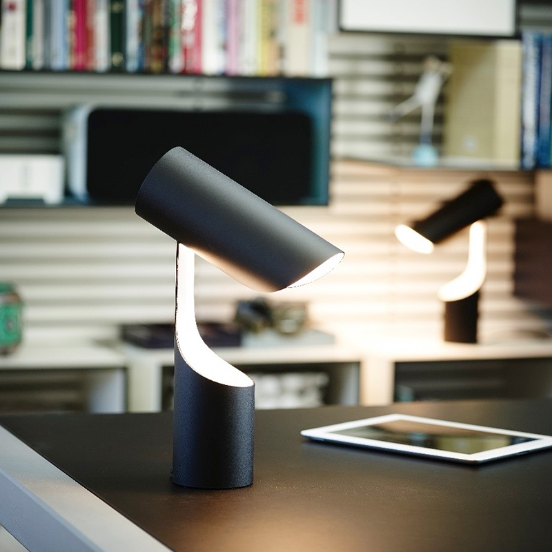 ムタチオとはデンマーク語で、「変形」の意味。シンプルな筒の形状から、灯具を持ち上げるとスタイリッシュなランプに変形するこの製品は、まさにその名にふさわしく生活の中に上質な質感と表情を見せてくれます。中央の切れ込みから上部に光源が収まっており、筒からオープンするように上部を動かすことで光の角度を自由に調節することができます。他にはないデザインのスタイリッシュなタスクライトです。