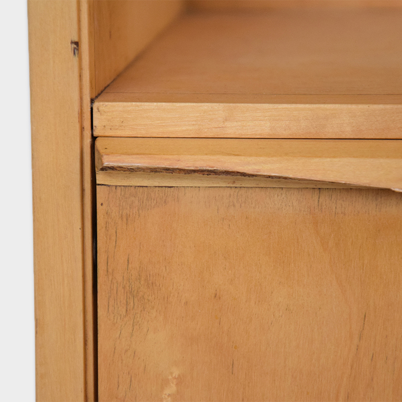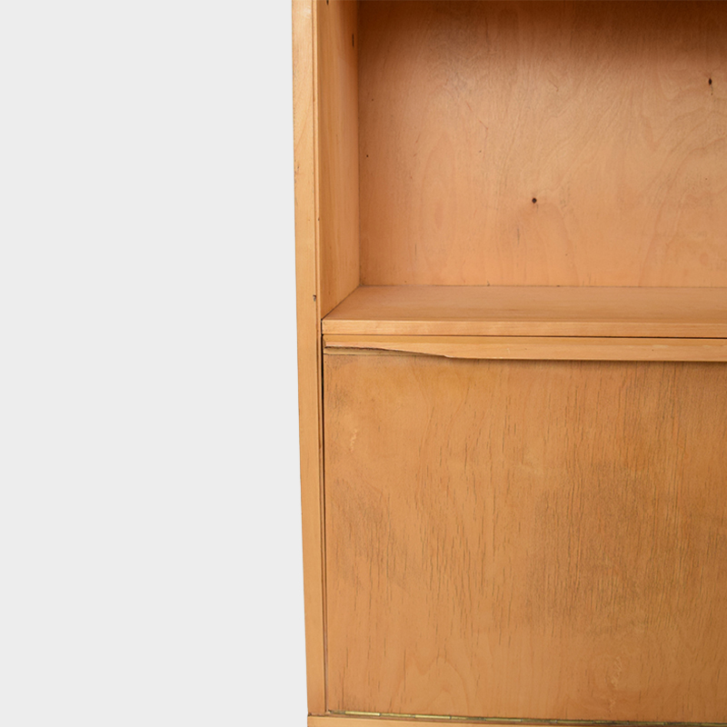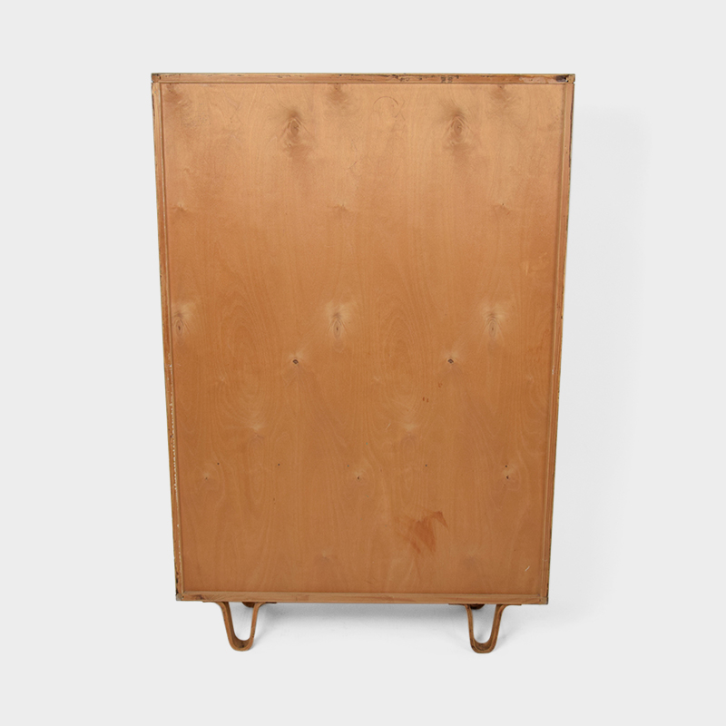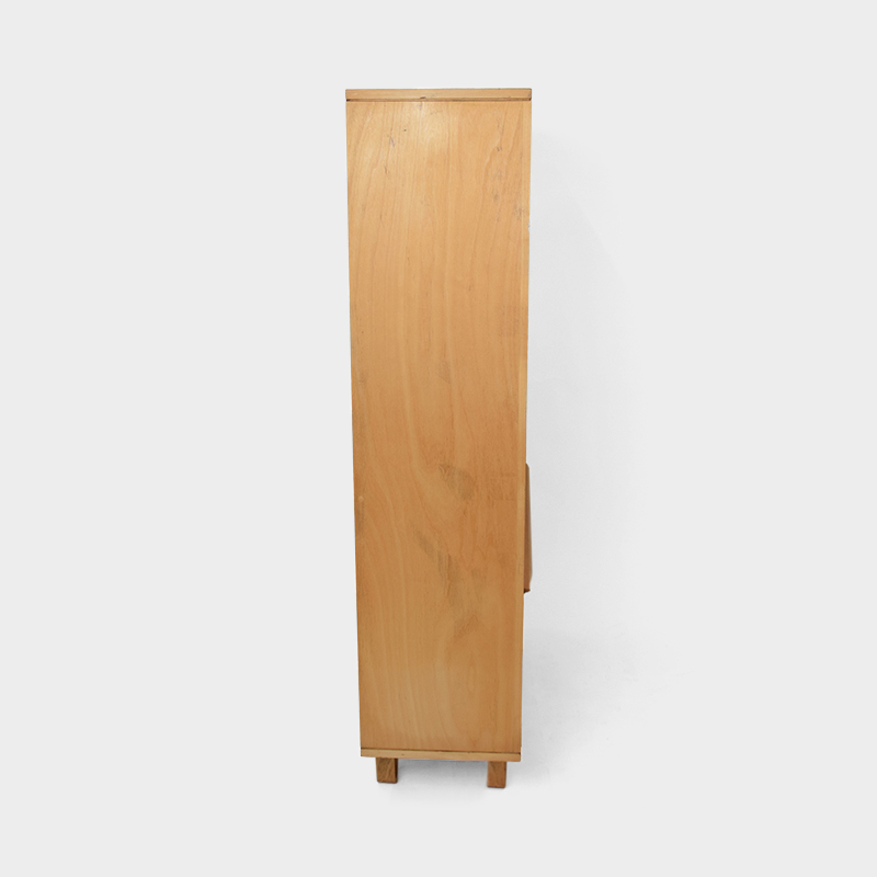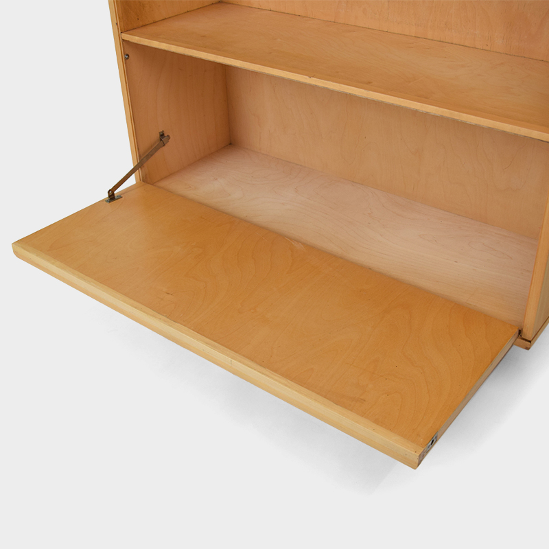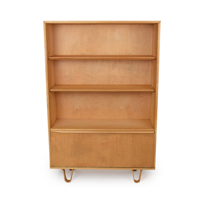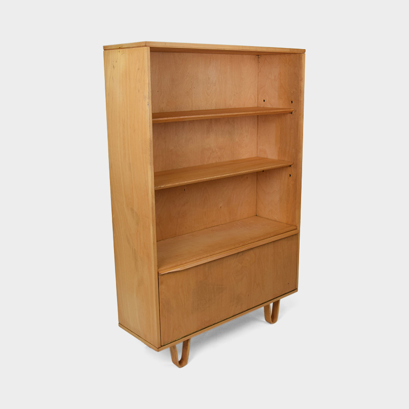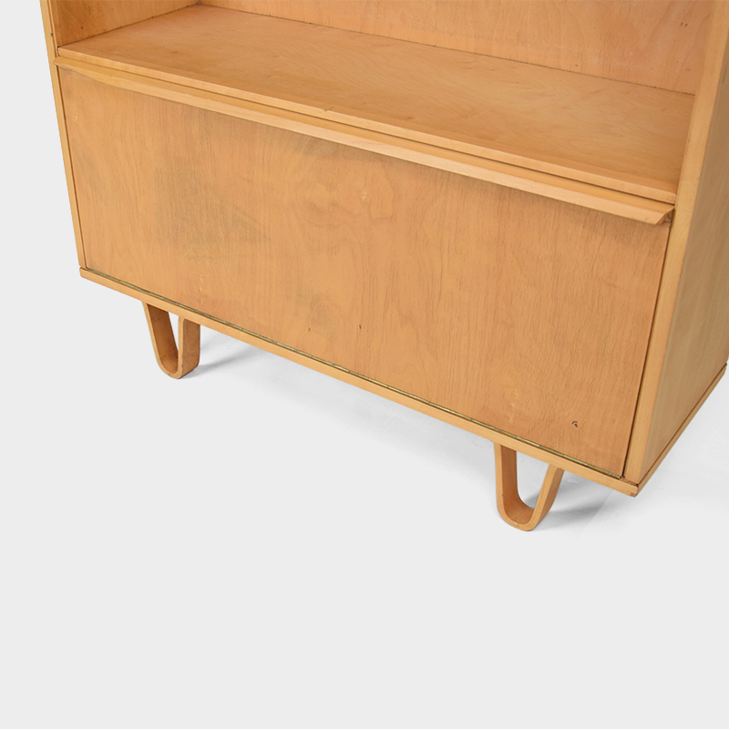 曲線的なバーチ材の脚が特徴で、印象に残るデザインです。本棚や収納棚としてご利用いただけます。オランダ人デザイナーCees Braakmanがデザインし、オランダのPastoe社によって製作された「BB03」ブックシェルフ。