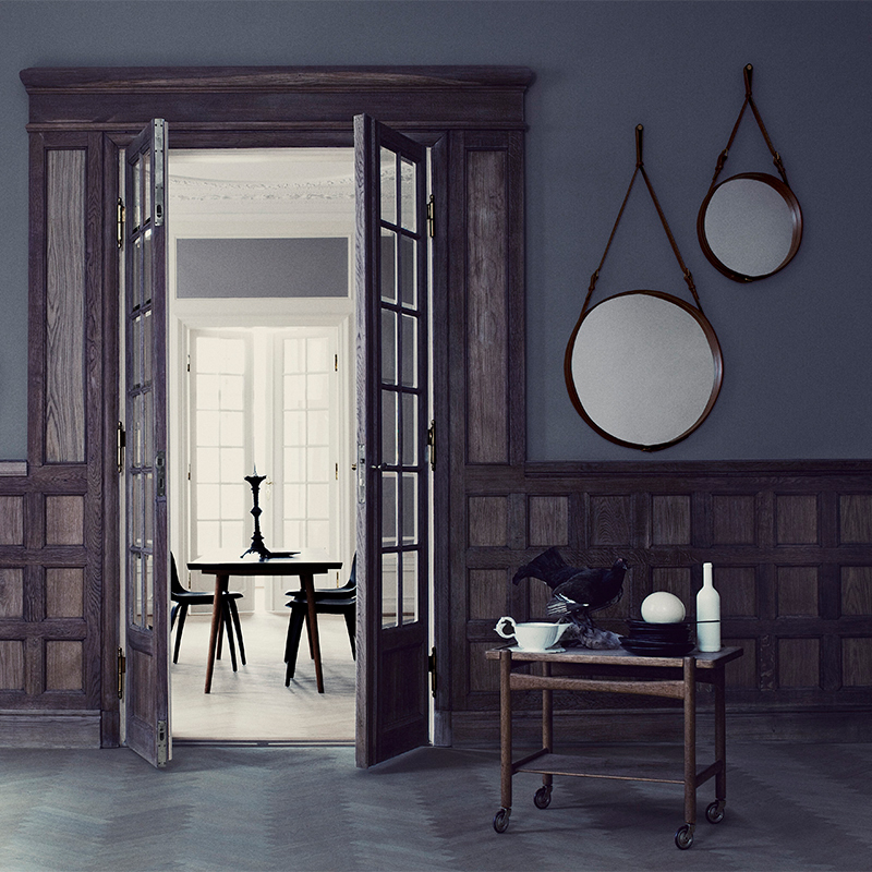 アドネがフランスの有名ファッションメゾンのためにデザインした『アドネコレクション』は、革とガラスの異なる素材感を組みあわせたエレガントなコレクションです。馬具に触発されたストラップベルトやレザー、真鍮金具のディテールがインテリアをエレガントに印象付けます。