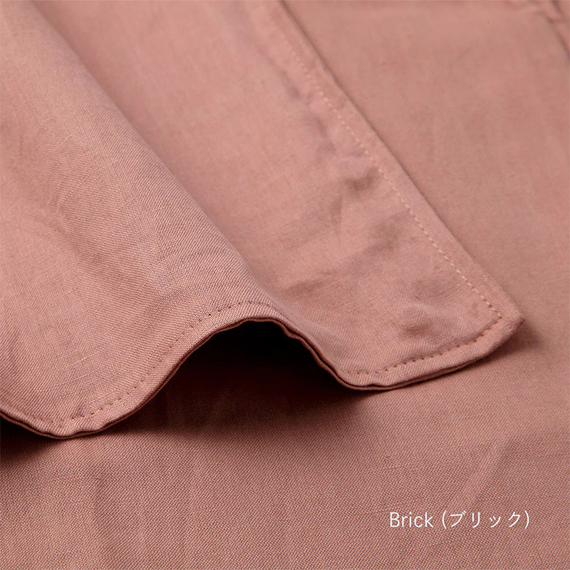 縦糸にコットン、緯糸にフレンチリネンを使用した平織りの生地は、程よいシャリ感と肌なじみの良い風合いが特徴。